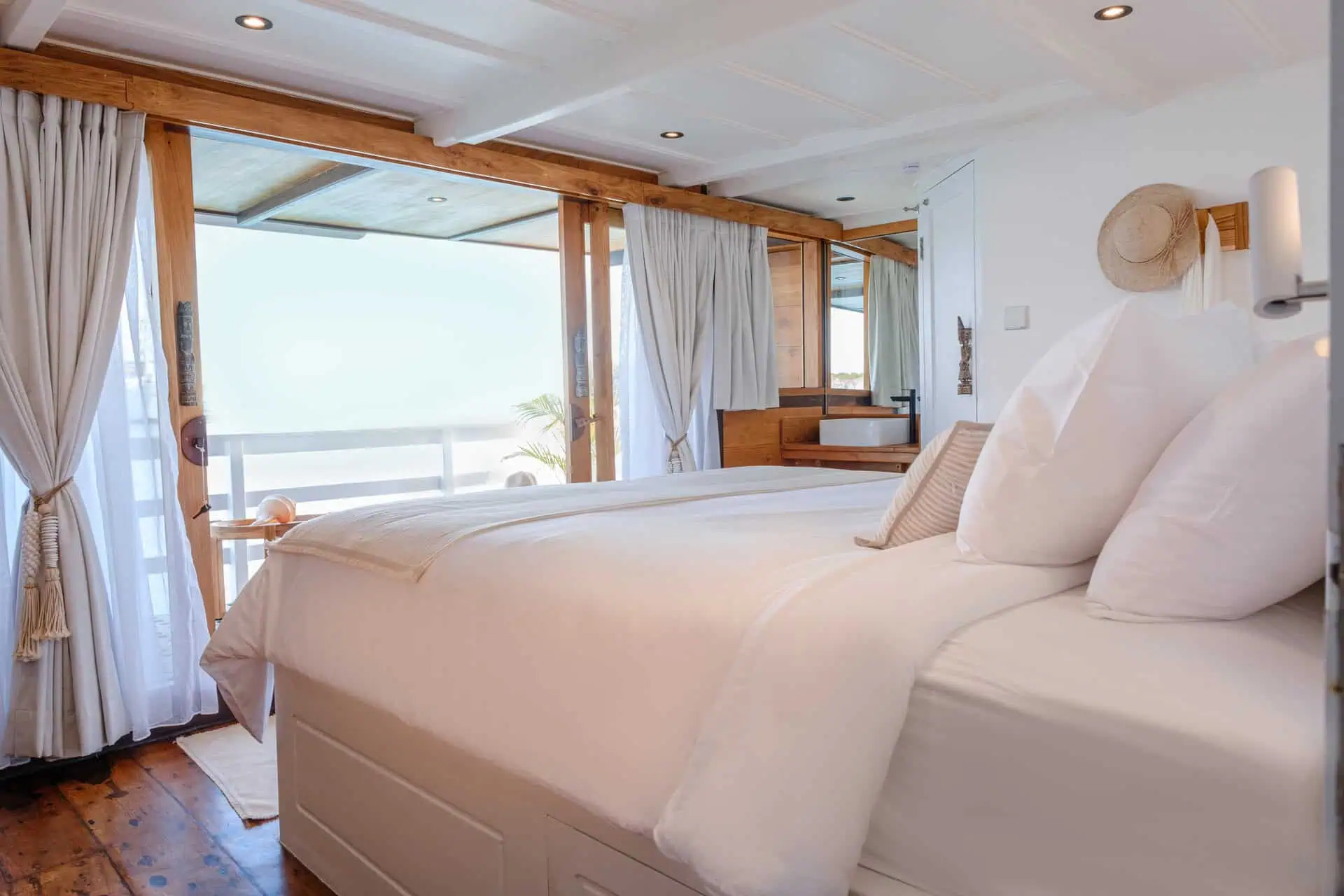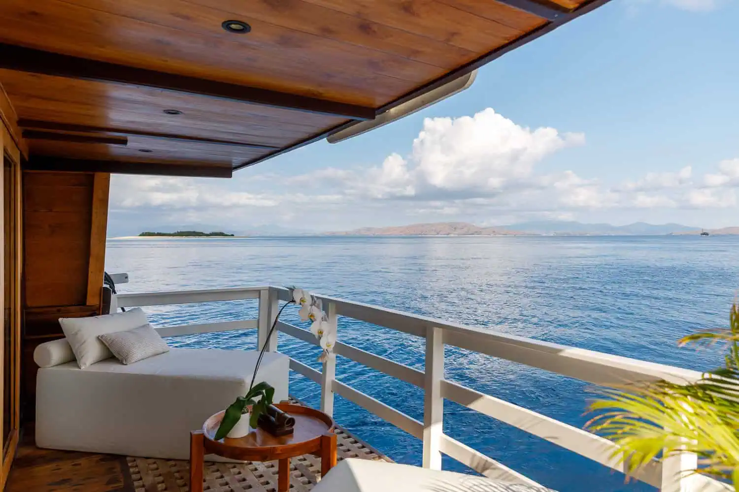 The Kei Cabin offers a luxurious stay with a private terrace featuring chairs and a coffee table for guests to enjoy the breathtaking views during the cruise. This spacious cabin includes a king-size bed, which can be converted into twin beds to accommodate two guests, a working desk, and an en suite bathroom, ensuring both comfort and convenience.