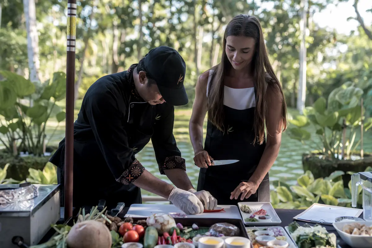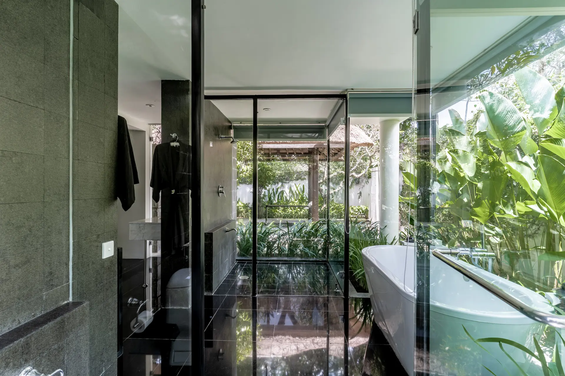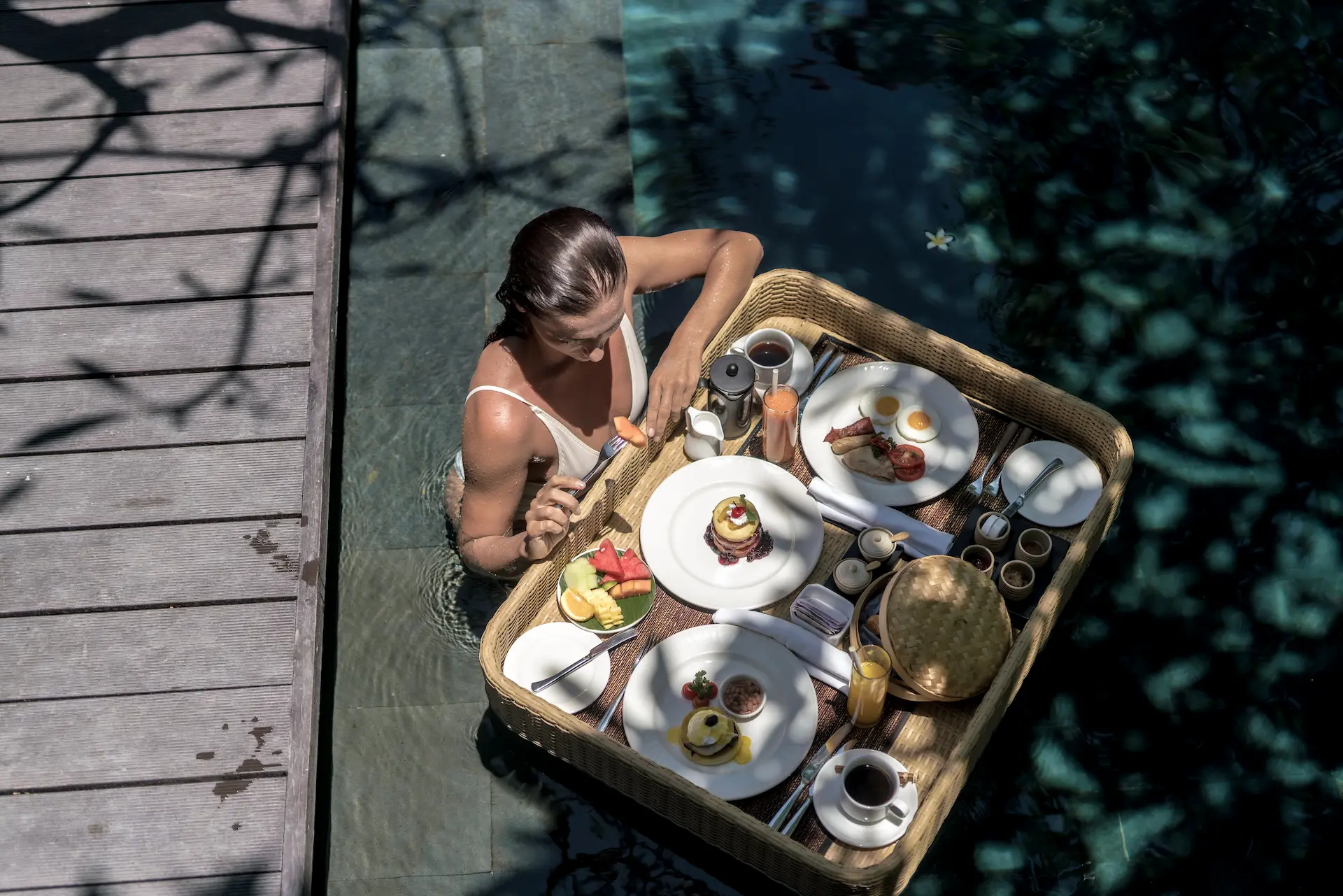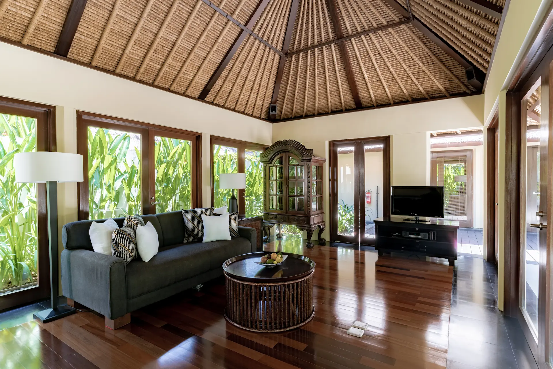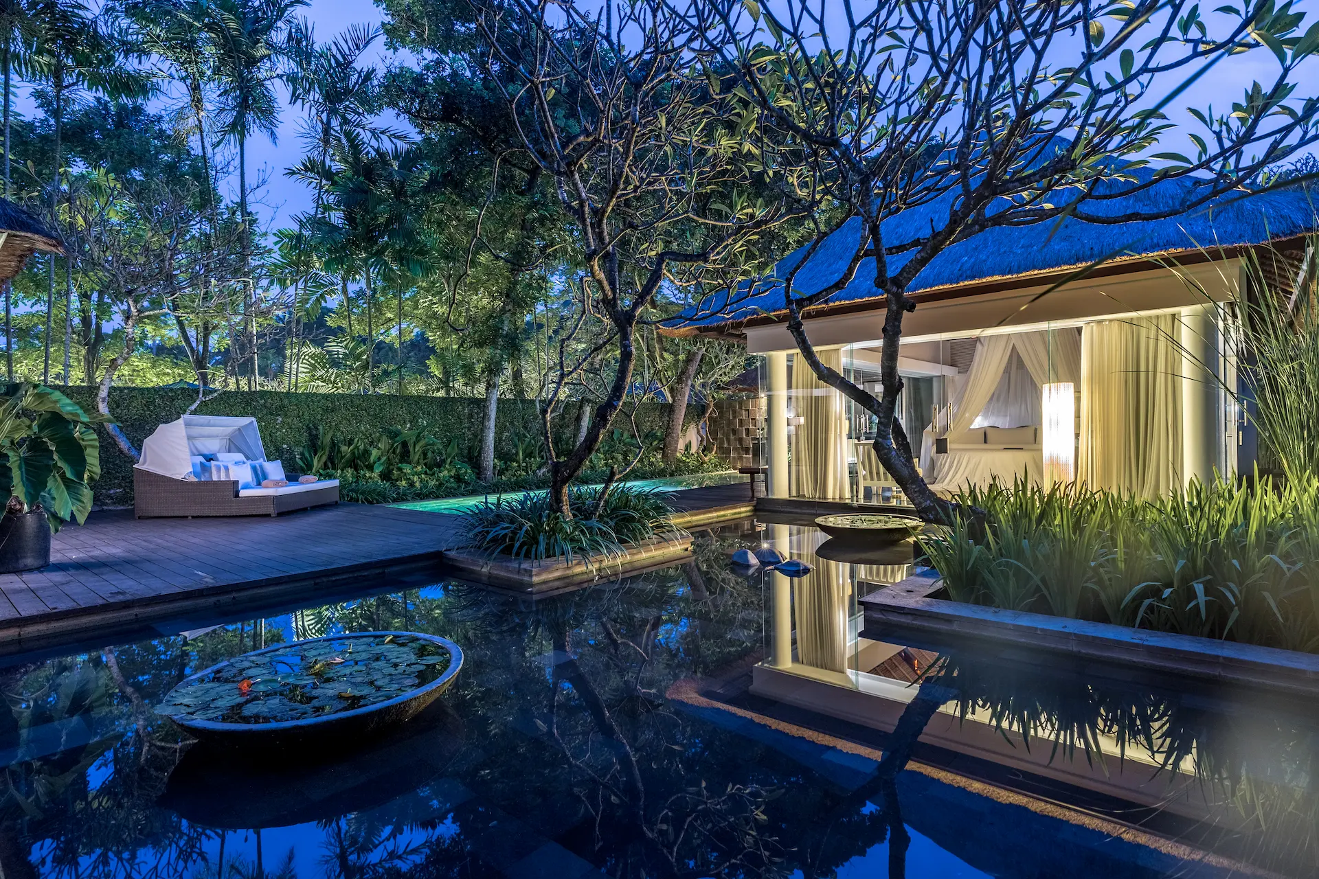 The Honeymoon Suite explores the creative components of modern Indonesian design through the use of local pieces of artwork and funky furnishings that make a statement. An enormous circular bed, perfect for private encounters, dominates the main sleeping pavilion which is adorned in pristine white. Your very own indulging en-suite Jacuzzi has been designed especially for lovers, while the personal pool setting is ideal for romantic candlelit dinners.