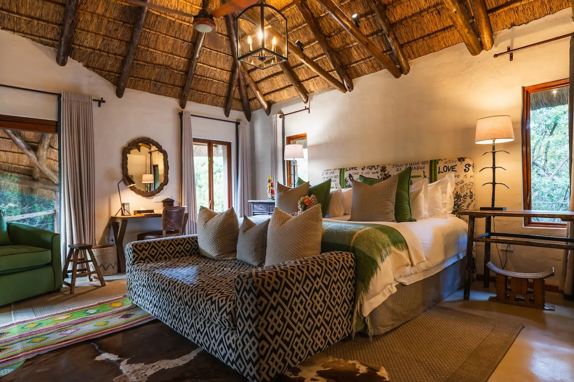 Designed for couples and solo travelers seeking intimacy and quiet, it’s an eco-luxury escape that brings the sounds and sights of the wild right to your door. A true forest-canopy retreat within a Big Five safari setting.