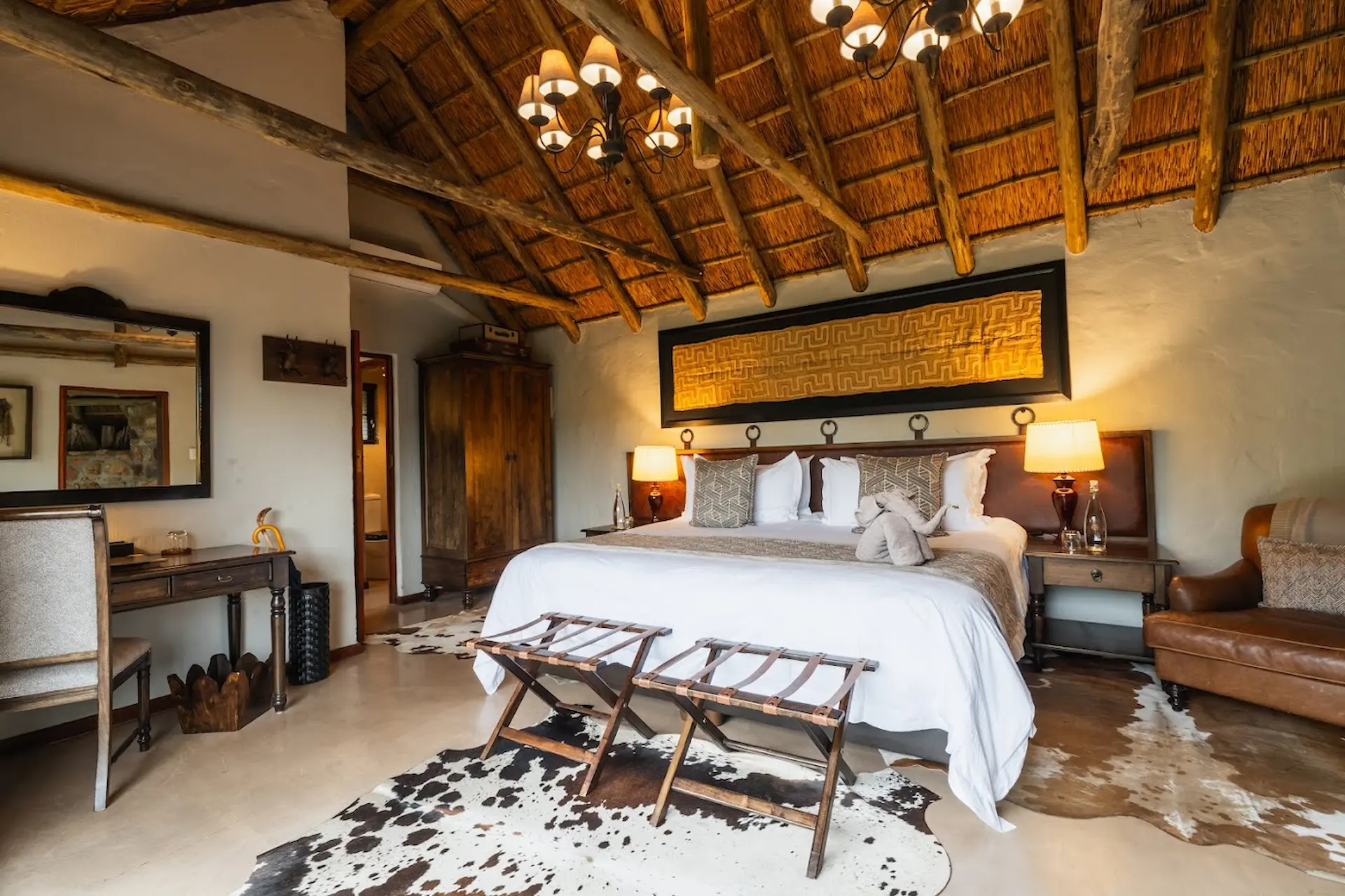 The lodge offers sweeping views, elevated dining, and relaxed luxury in the heart of the reserve. A great fit for couples or small groups who value privacy with an African ambiance.