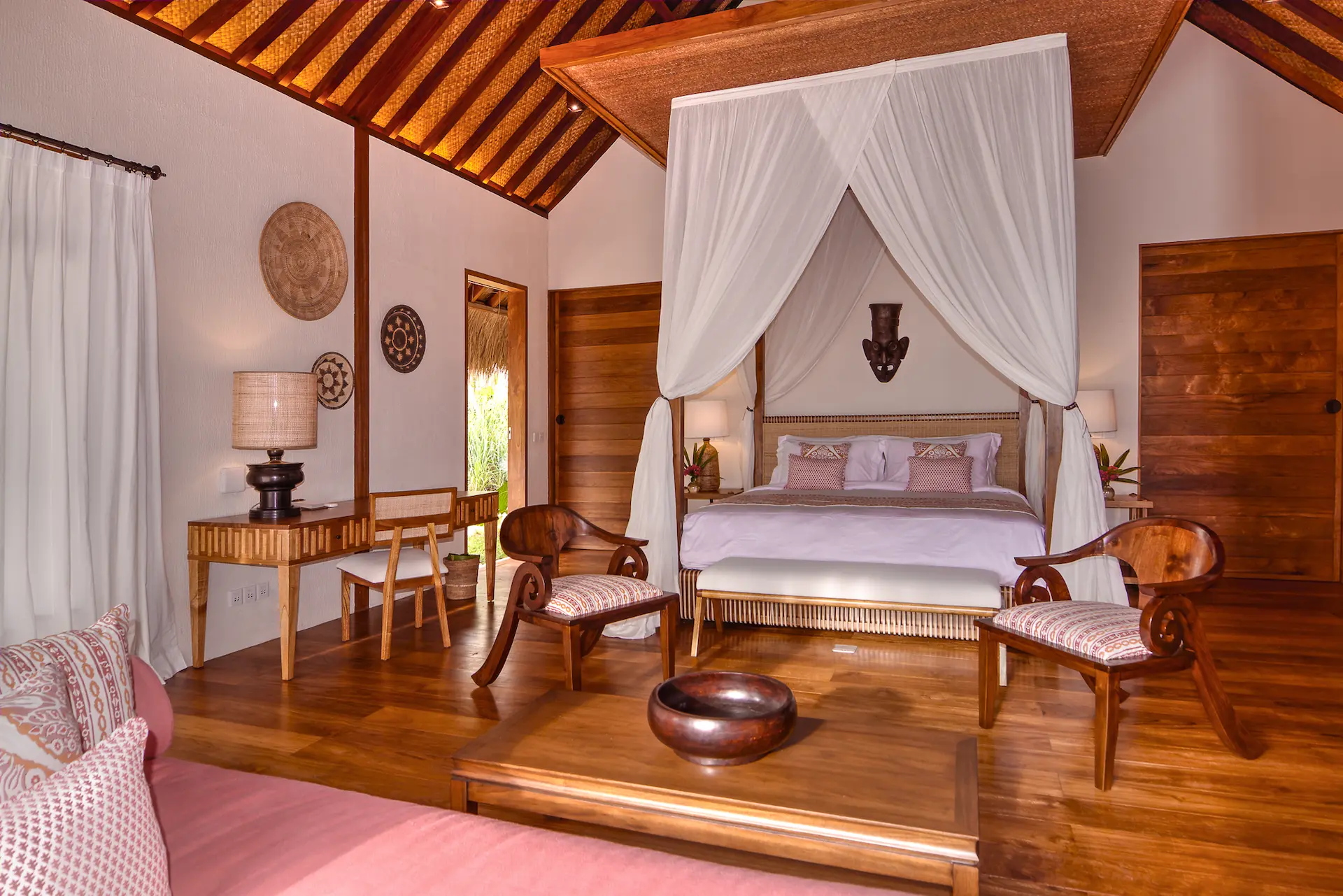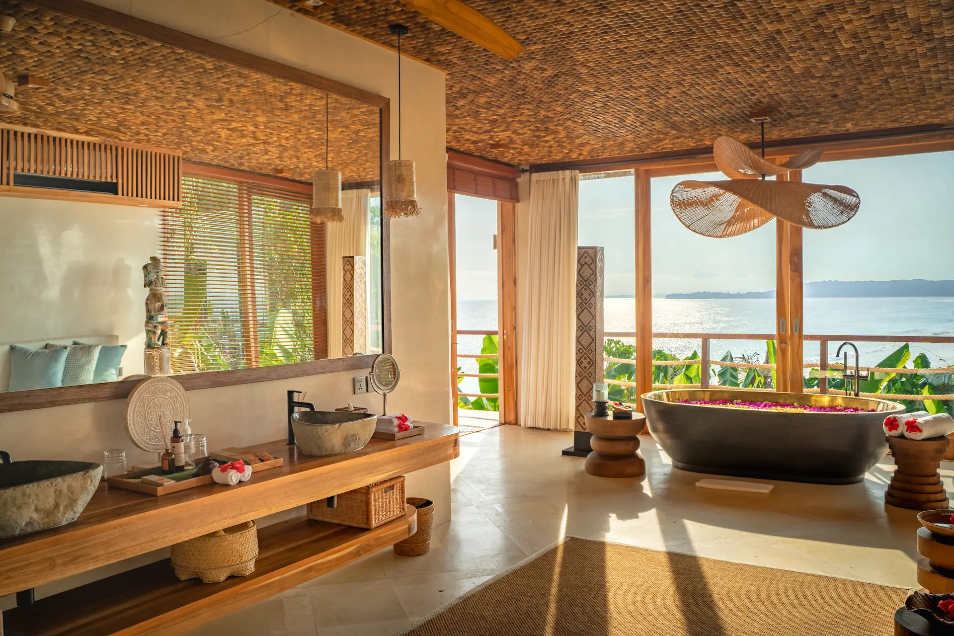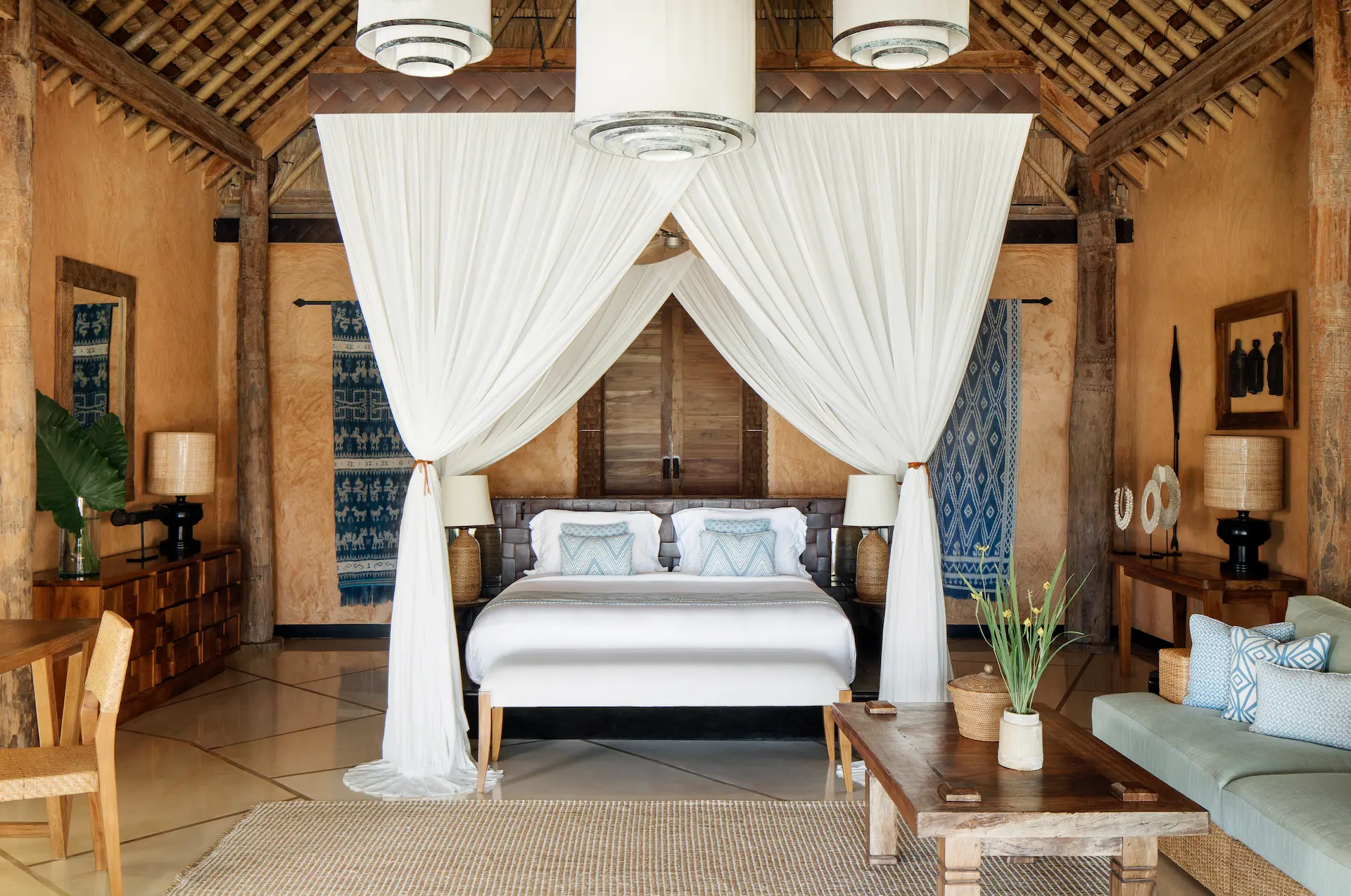 This estate includes:• King beds in all main bedrooms• Twin beds in two of the Mandaka Sumba House villas• Balconies with ocean views• A variety of private plunge pools, cold plunge pools, a waterfall and lap pool• Indoor and outdoor dining and entertaining areas• Indoor and outdoor bathtubs and showers• Walk-in closets• Beach bag• Sandals• Bathrobe• Safe deposit box• Individual AC• Ceiling fan• Insect repellant• Lighted vanity mirror• Ample storage and hanging space• Hairdryer• Minibar• Wi-Fi• Yoga mat