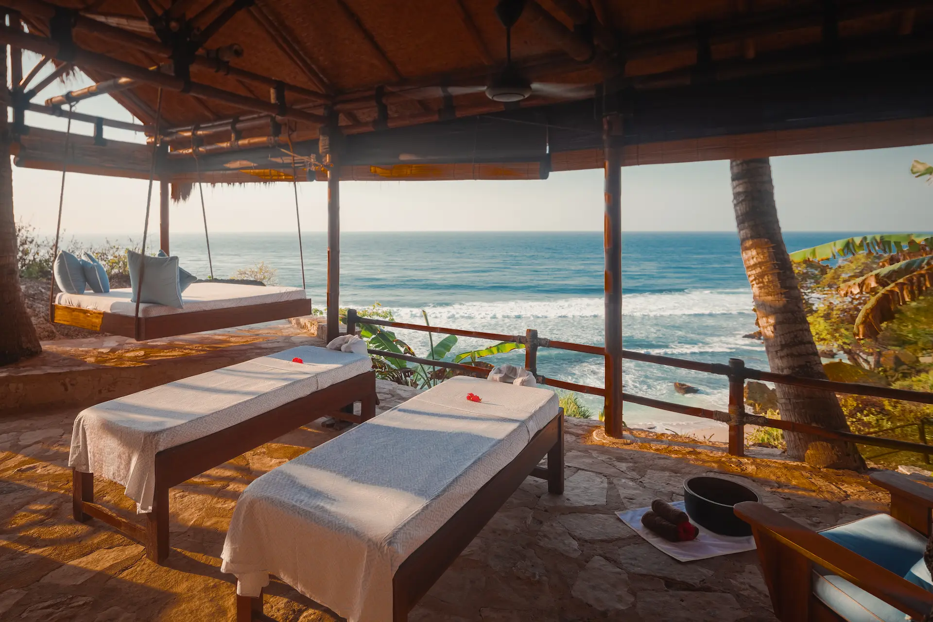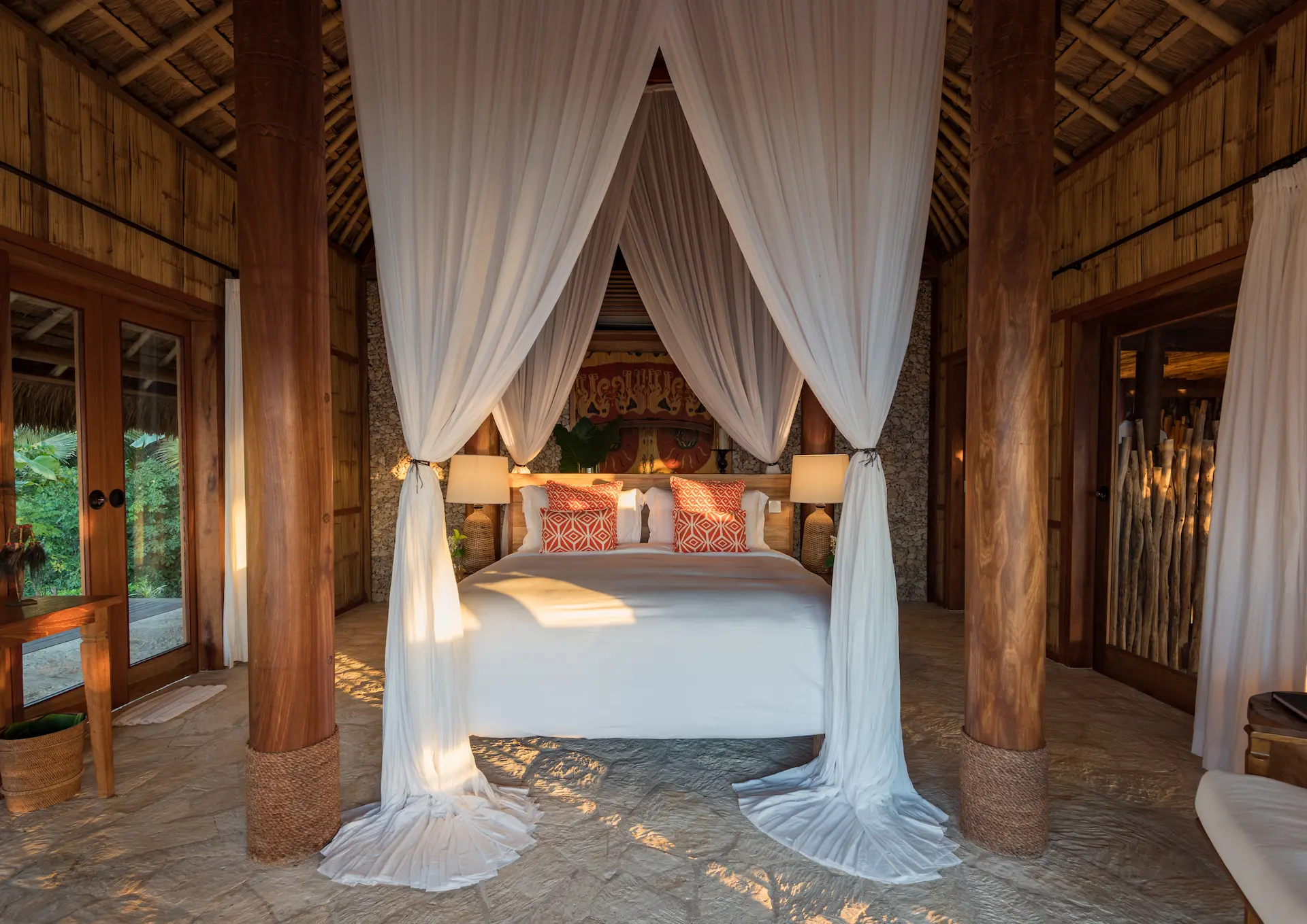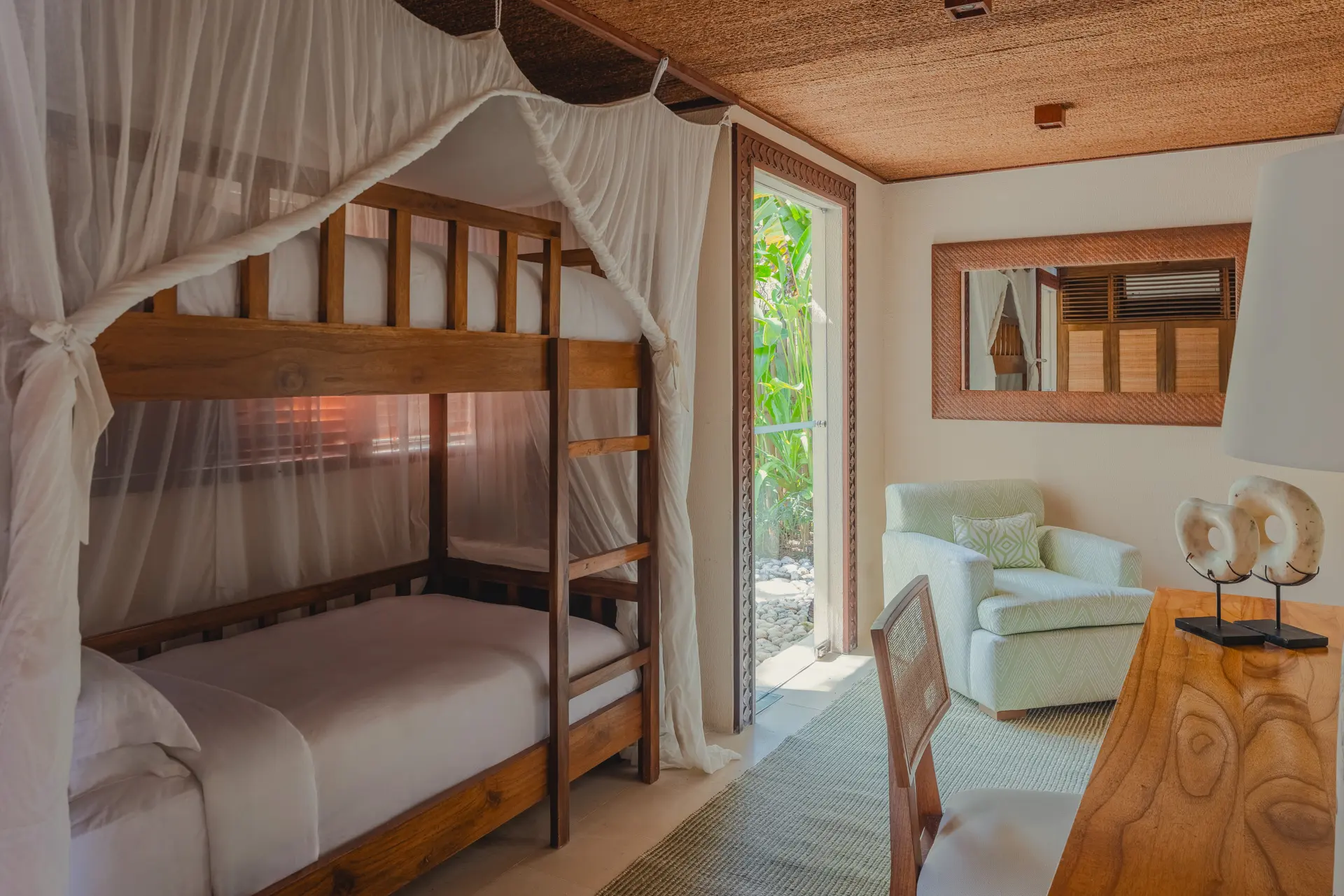 This estate includes:• King beds in all main bedrooms• Twin beds in two of the Mandaka Sumba House villas• Balconies with ocean views• A variety of private plunge pools, cold plunge pools, a waterfall and lap pool• Indoor and outdoor dining and entertaining areas• Indoor and outdoor bathtubs and showers• Walk-in closets• Beach bag• Sandals• Bathrobe• Safe deposit box• Individual AC• Ceiling fan• Insect repellant• Lighted vanity mirror• Ample storage and hanging space• Hairdryer• Minibar• Wi-Fi• Yoga mat