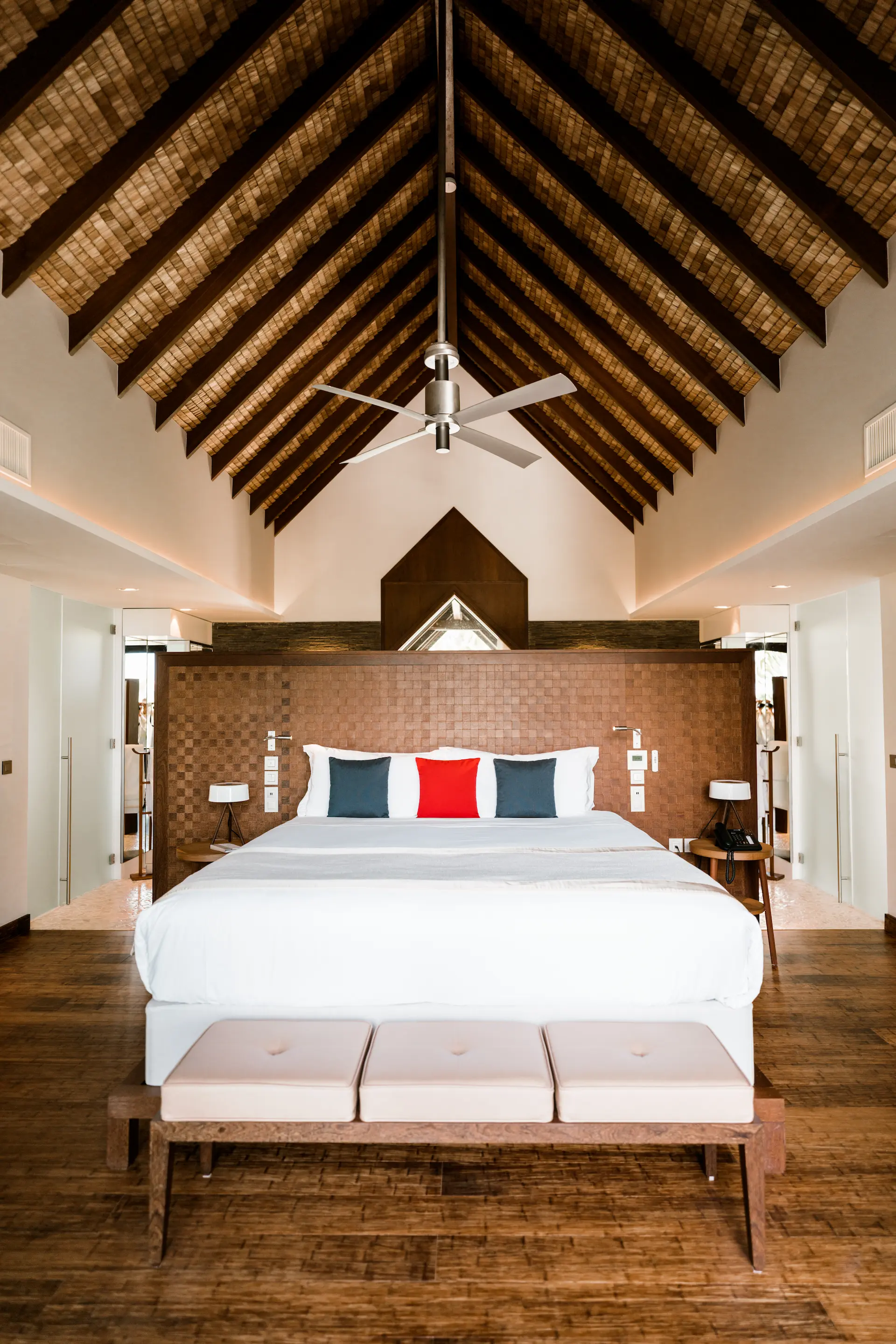 Sustainable design.<br/>In‑villa plunge pools & private beach decks. <br/>All‑inclusive gourmet by Michelin‑starred chef.<br/> Deep sea‑water cooling system reducing carbon footprint.<br/>Electric & human‑powered transport system.<br/>Restored island ecosystem and vibrant wildlife.