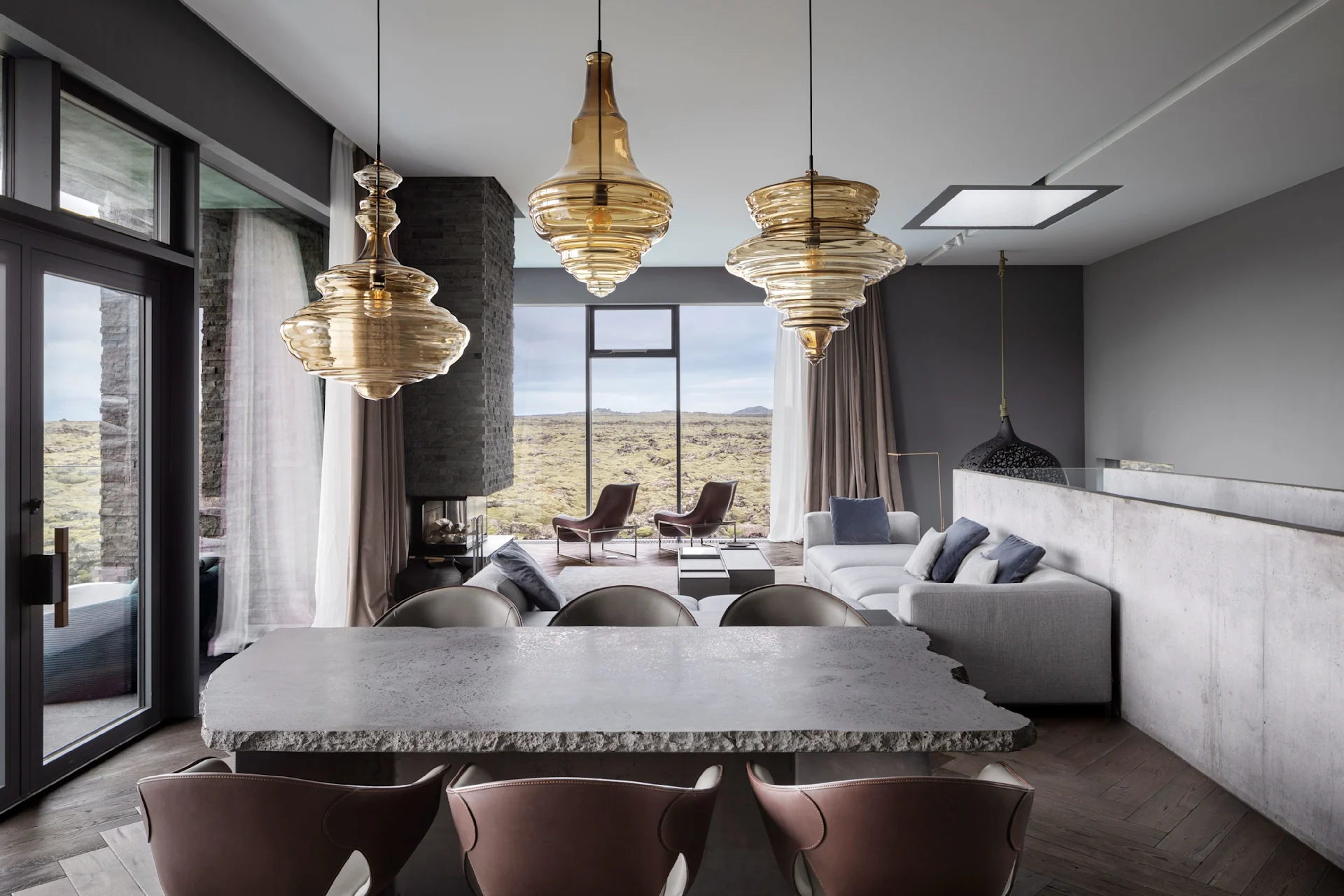 Anchored beside ancient lava flows, the Lava Suite connects guests with Iceland’s volcanic soul through its minimalist aesthetic and panoramic windows. Designed for contemplative comfort, this suite is ideal for wellness seekers and quiet adventurers alike.